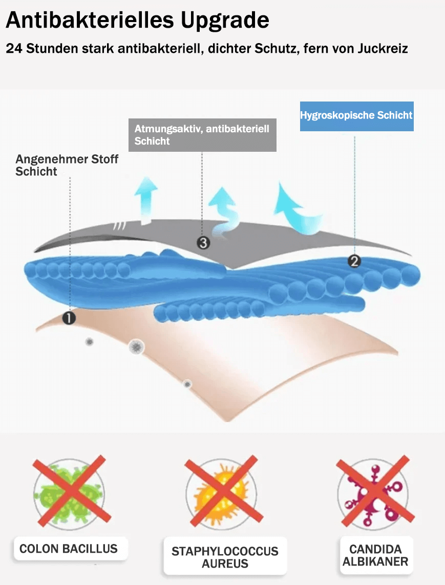 2023 Das neu entwickelte hygroskopische Material kann Flüssigkeit innerhalb von 10 Sekunden absorbieren und hält Ihre Unterwäsche den ganzen Tag trocken!