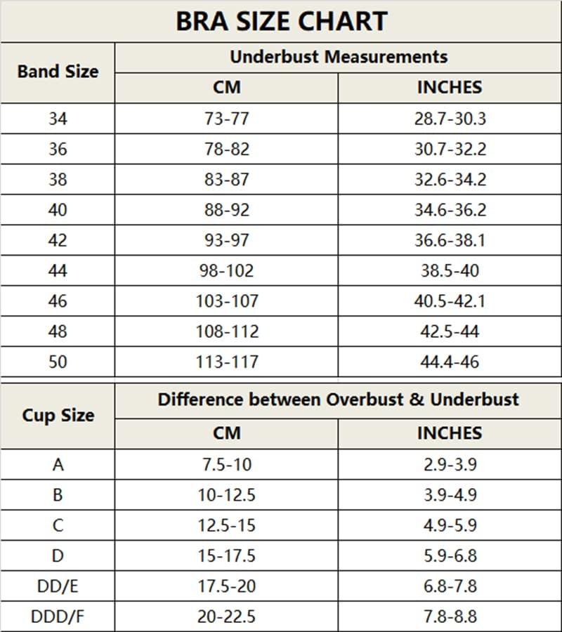 Wenn Sie die Größe Ihres BHs nicht kennen, können Sie ihn anhand der Größentabelle bestellen.👇👇